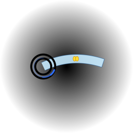 - Figure elements: double ring = Filament core; light-blue arc band = color Channel; yellow = gluon Wave Packet; grayscale gradient = shallow basin.
