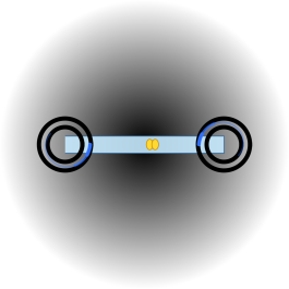 - Figure elements: the two double rings = the quark and antiquark Filament cores; the light-blue band in the middle = the color Channel; the yellow Wave Packet = the gluon; no electric arrows are drawn for the structure as a whole, because it is colorless.